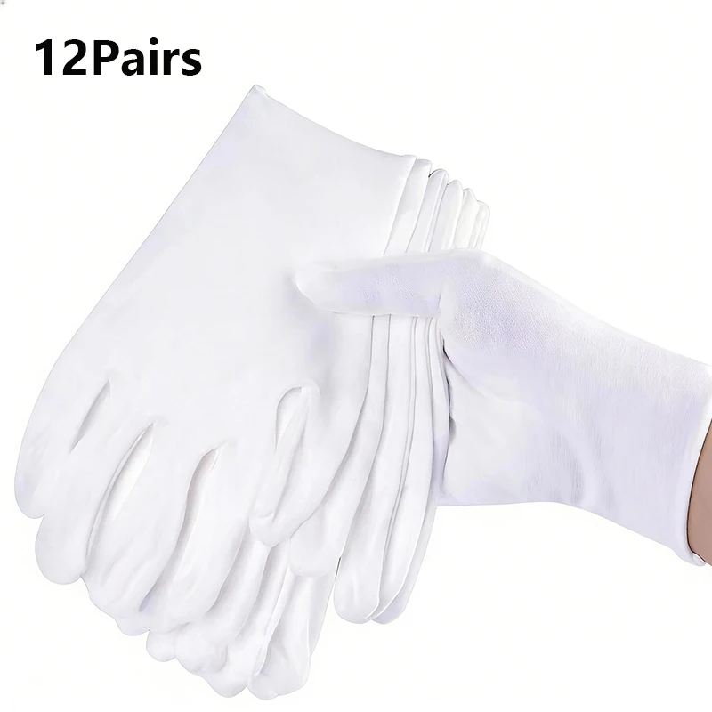 12쌍의 흰색 면 작업용 장갑, 건조한 손, 필름 취급, SPA, 의식 및 가정용 청소를 위한 고탄성 부드러운 장갑