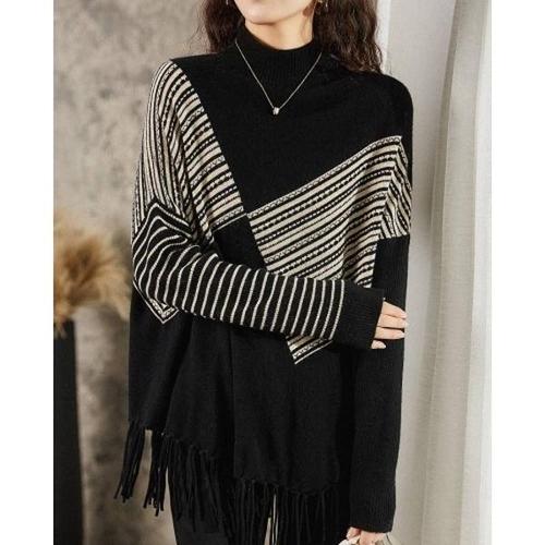 스트라이프 니트 케이프 어깨숄 머플러 판초 가디건 워머 WFKM0NH