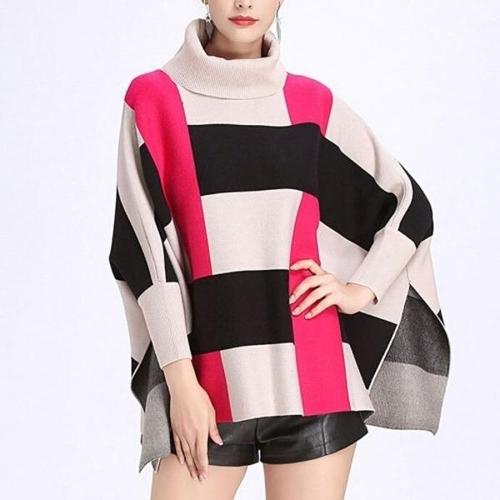 [엄지척]여성 봄 간절기 빅체크 터틀넥 니트 판초 망토 가디건_19807902_667501