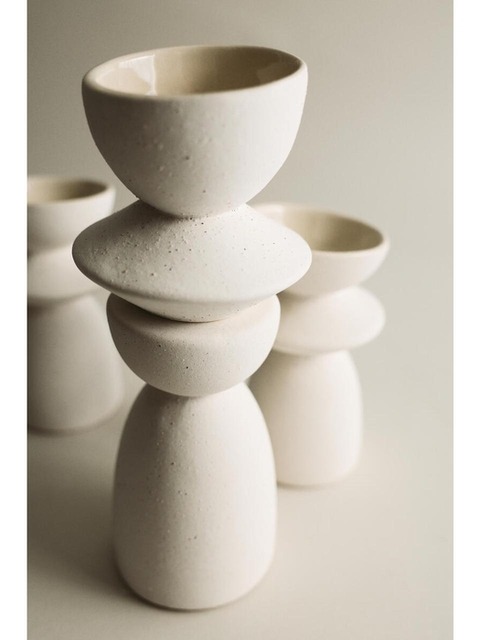 [에이치엔엠] 스톤웨어 캔들 홀더 화이트/라이트 베이지 1255019003