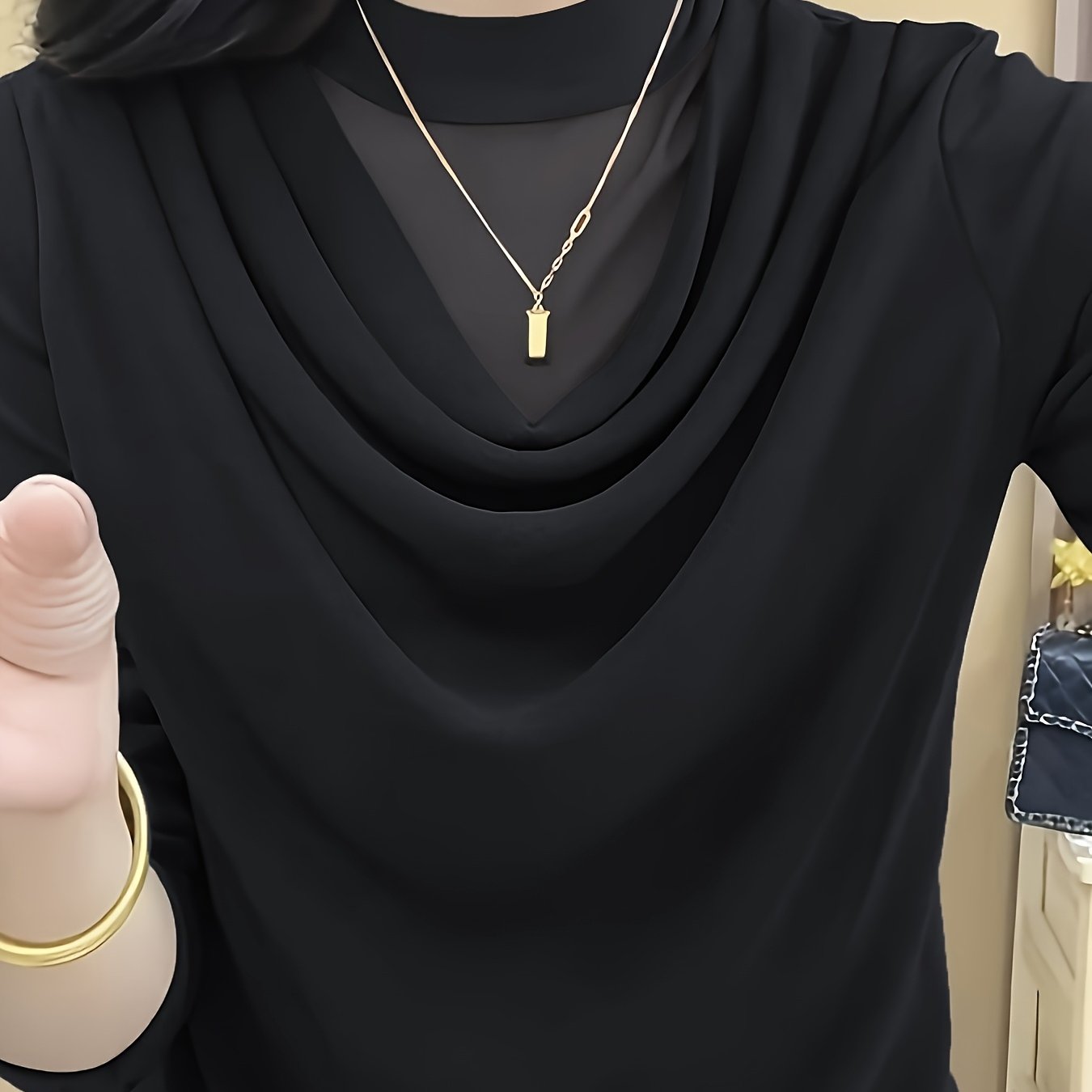 TEMU 2025 봄/가을 신상 라운드넥 반짝이는 긴팔 여성 티셔츠, 루즈핏, 캐주얼하면서도 우아하고 다재다능한, 젊고 스타일리시한 상의. 원단은 편안하고 통기성이 좋으며 세탁기 사용 가능하지만 드라이클리닝은 불가