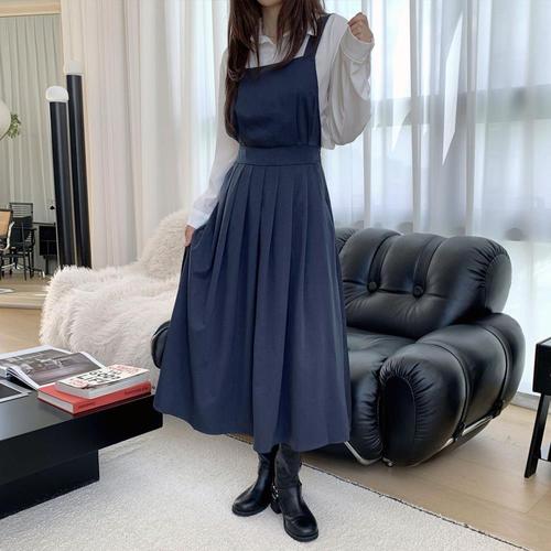 [다잇템]여성 잔주름 코르셋 롱 드레스 블라우스 세트