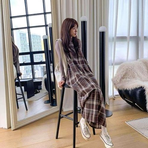 [다잇템][다잇템] 여자 키치무드 격자 코르셋 롱 사이드셔링 원피스_23227076_588872