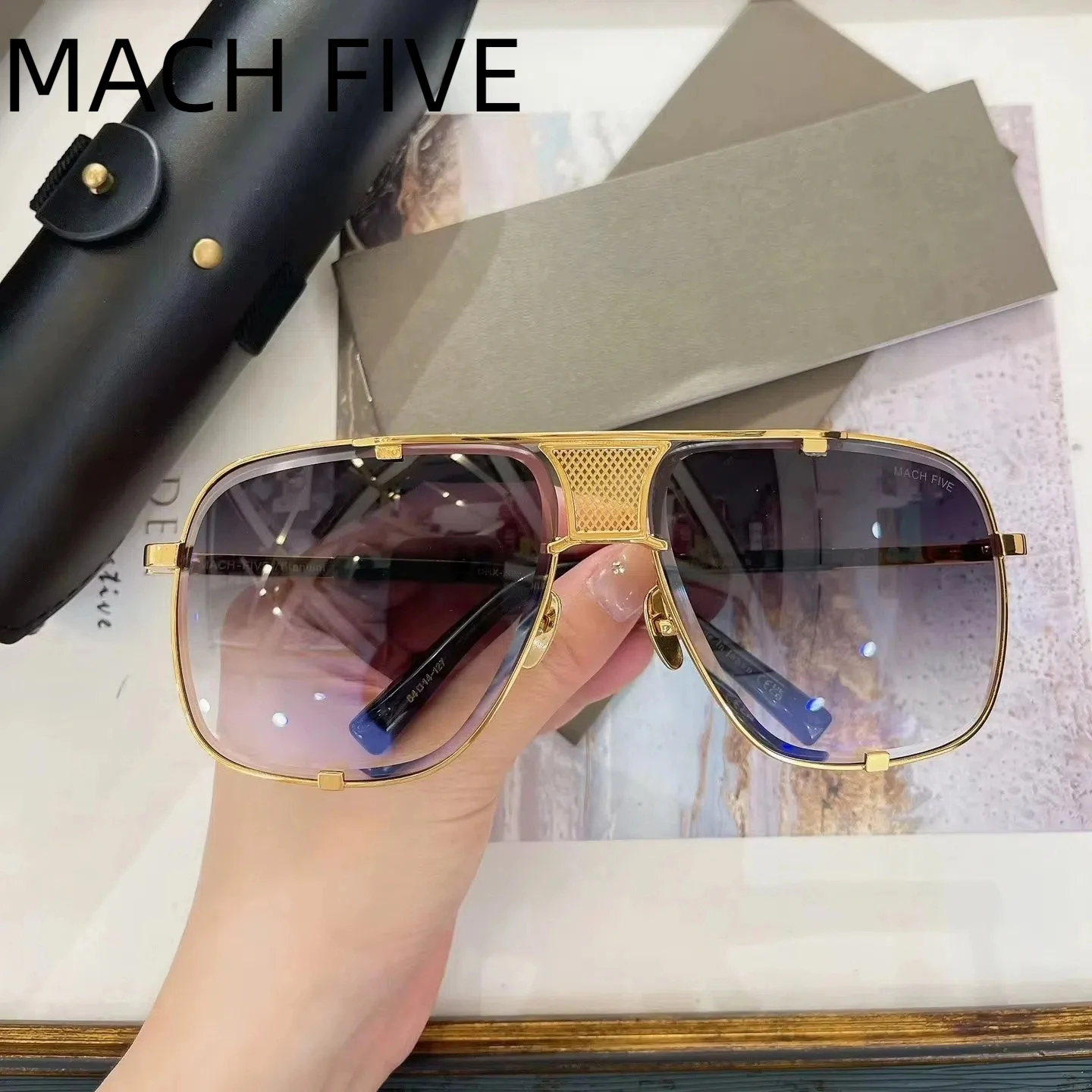 정품 DT DRX-2087 MACH FIVE 스타일리시 비즈니스 UV400 남녀 선글라스 한정판 빈티지 커플 안경 박스 포함