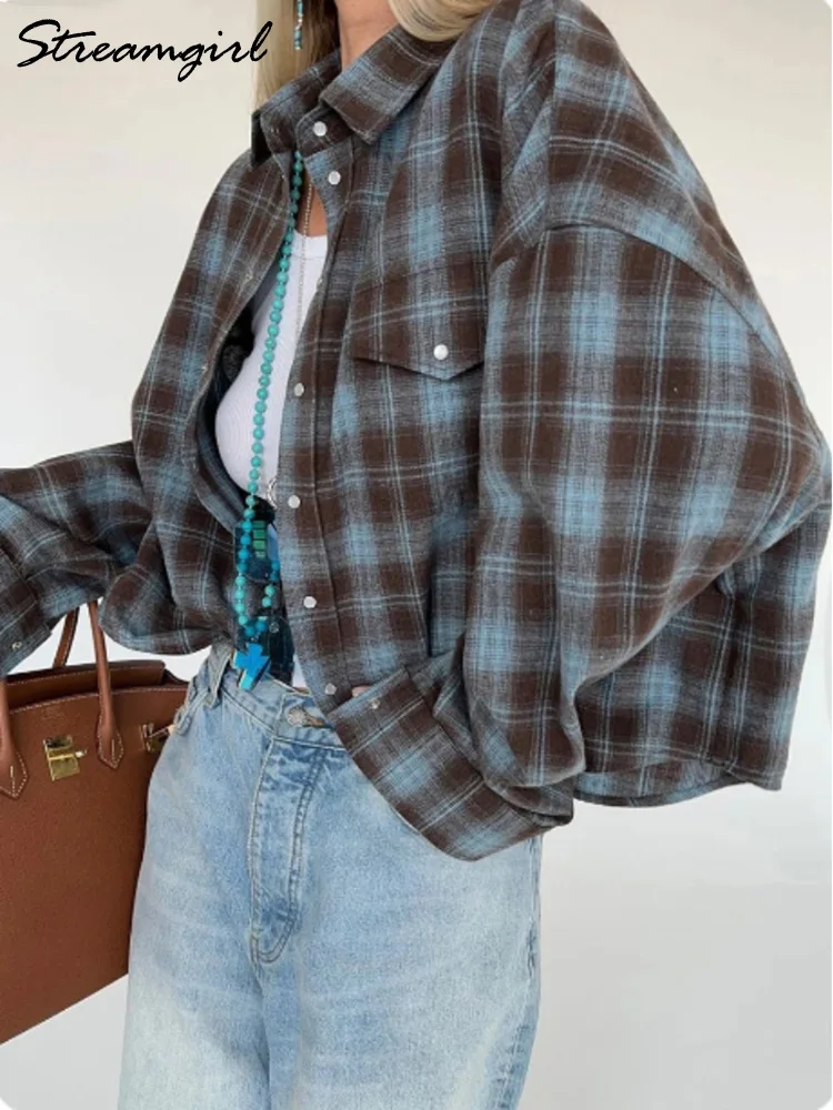 TEMU 봄가을 패션 롱 체크 셔츠|블라우스|여름블라우스|여성블라우스