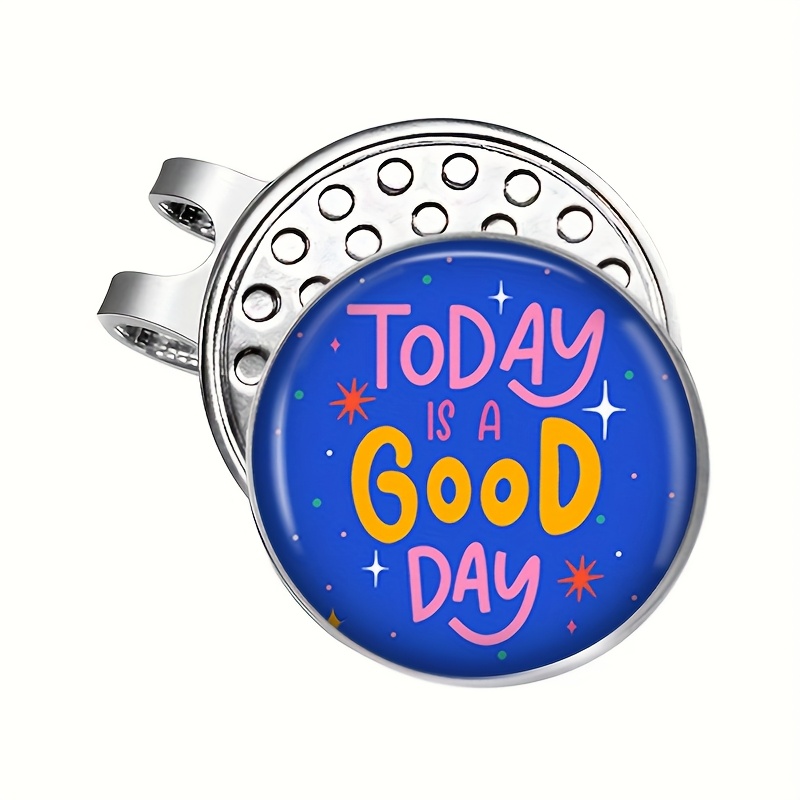 TEMU JWEIJIAO 골프 모자 클립 "오늘은 좋은 날입니다" 모티브 - 골퍼를 위한 밝고 분리 가능한 액세서리, 골퍼를 위한 쉬운 부착 및 분리 디자인, 캐주얼 스타일, 철과 유리 재질, 캐주얼 의상에 완벽한 골프 액세서리