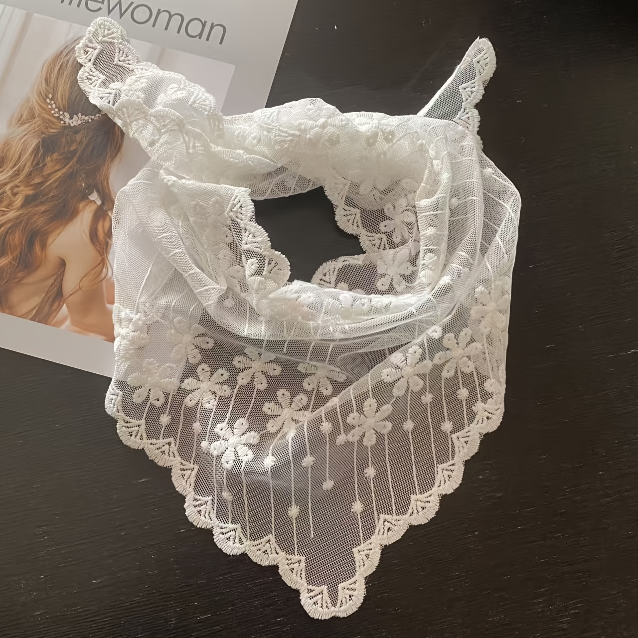 TEMU 레이스 자수 삼각 스카프, 목 액세서리 스카프, 가방 장식 타이, 헤어밴드, 탈부착 칼라 장식, 작은 삼각형 헤드스카프, 프린지가 있는 스카프