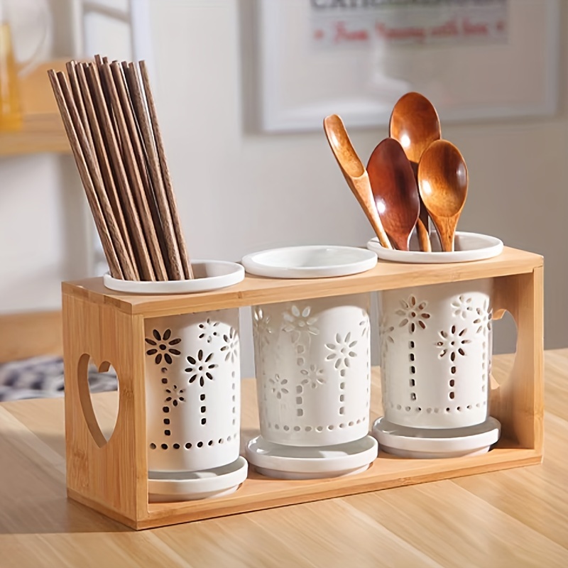 TEMU 창의적인 세라믹 젓가락 거치대 - 포크, 숟가락 및 기타 주방 도구용 다기능 주방 도구 정리대, 배수구 포함