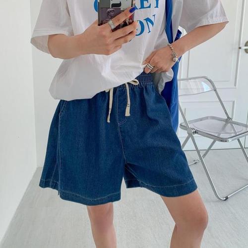 [다잇템]여자 썸머 부드러운 쿨 고무줄 넓은 데님팬츠 (16918143A)