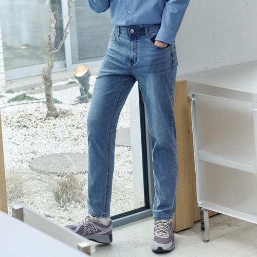 [잠뱅이] 남성 린넨쿨맥스 밴드 브러쉬 워싱 타이트 데님 팬츠 미디엄블루