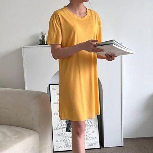 골지 옆트임 캐주얼 반팔 쿨원피스