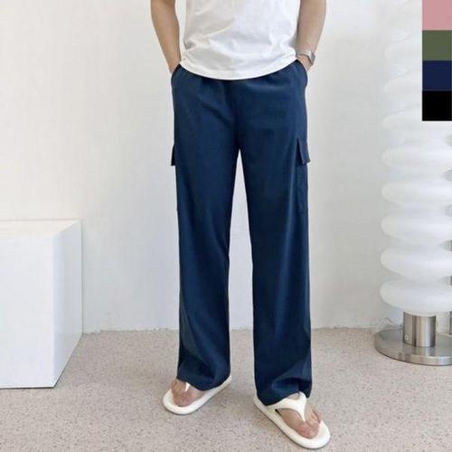 남성 쿨 바지 데일리 스트레이트 슬랙스 와이드 팬츠 밴딩 여름 스판 트레이닝