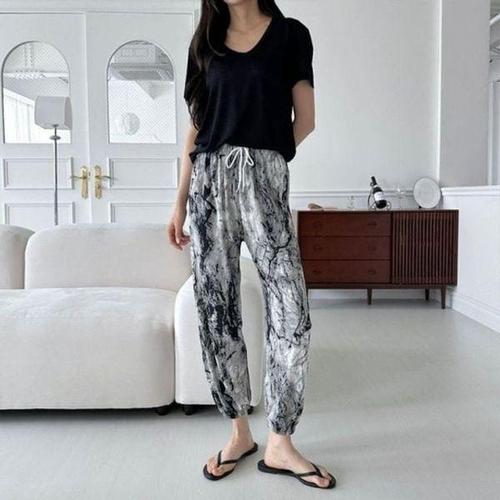 [에이치플러스몰]겨울바지 페인팅 밴딩 원단 패턴 시원한 여자 와이드 바지 통 여름 팬츠 쿨 무늬 조거