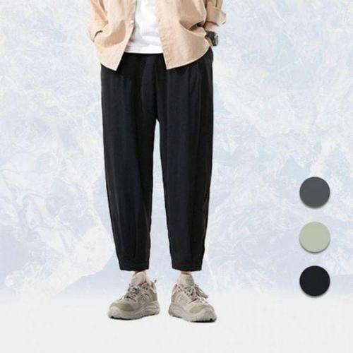 [에이치플러스몰]겨울바지 쿨링 퍼드핏 테이 바지 쿨 밴딩 편한 퍼드 배기 팬츠 남자 통넓은 여름 와이드