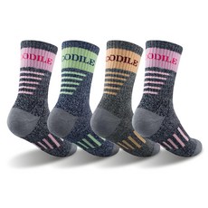 크로커다일 여성용 드라이쿨 스포츠 쿠션 긴목 등산양말 4족 세트 CD321, 아소트, 1세트