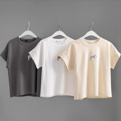 |KST9580|여성 얼룩말 디자인 라운드넥 쿨 여름 반팔 티셔츠