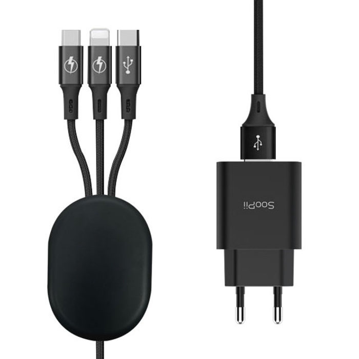 SOOPII 수피 도난방지 업소용 QC3.0 퀵차지 18W 3in1 동시 고속 멀티 충전기