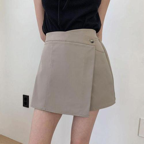 [샵앤]여성 밴딩 옆포켓 도톰원단 사선절개 랩스커트 팬츠 RBE-WPT-20871-카키