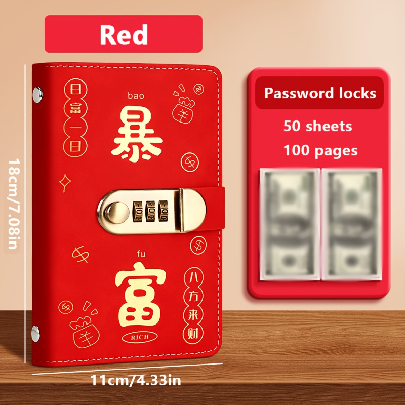 TEMU A6 저축 노트: 조합 잠금장치와 간단한 커버, 가로 및 세로 방향 지원, 100장 용량, 챌린지 노트, 예산 관리, 현금 입금 관리에 이상적
