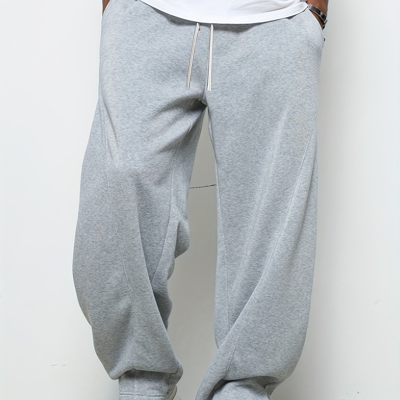 TEMU 남성용 레그 조거 팬츠 - 탄성 허리밴드 & 커프 디자인, 와이드 레그 캐주얼 트라우저, 헬스웨어, 캐주얼 복장 - 그레이/블랙 | 벨트 프리 디자인, 사계절용 (벨트 미포함) | 어반 스타일 운동복 바지