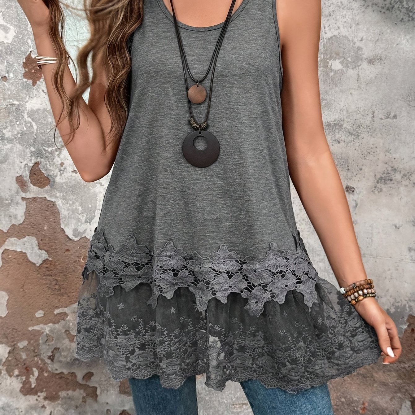 TEMU 여성용 여름용 대비 레이스 롱 베스트