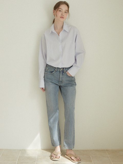 [택가 118,000원] 벤셔먼 우먼 웨스턴 브러쉬 워시드 블루 데님 셔츠 BOCSH892F