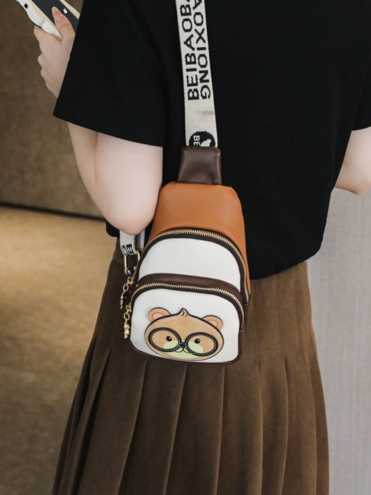 캐주얼 크로스바디 베어 체스트 백 여성용 휴대폰 가방 소형 패셔너블 디자인 2025 신상 레저 토트백