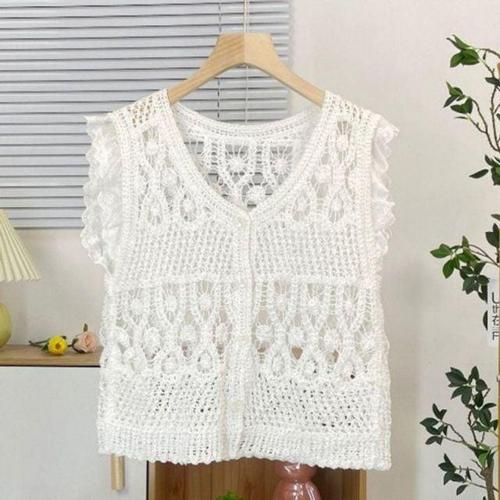 여성 크로셰 베스트 여름 뜨개 조끼 가디건