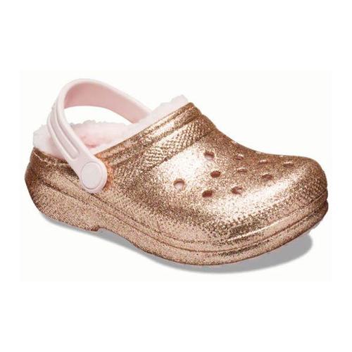 [크록스]키즈 클래식 라인드 글리터 클로그 방한화 털슬라이드_207462-160-MO
