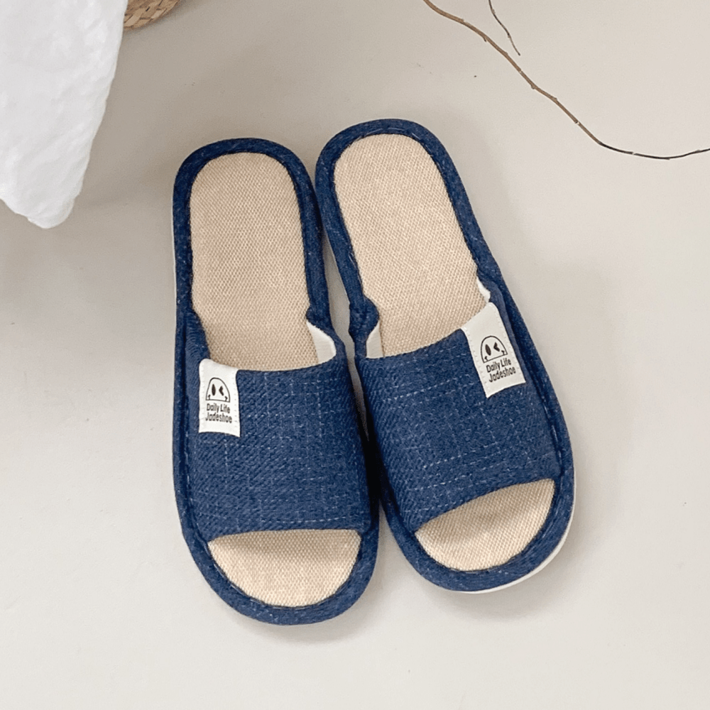TEMU 스마일 윙크 린넨 슬리퍼, 층간소음 실내화, 쿠션 거실화