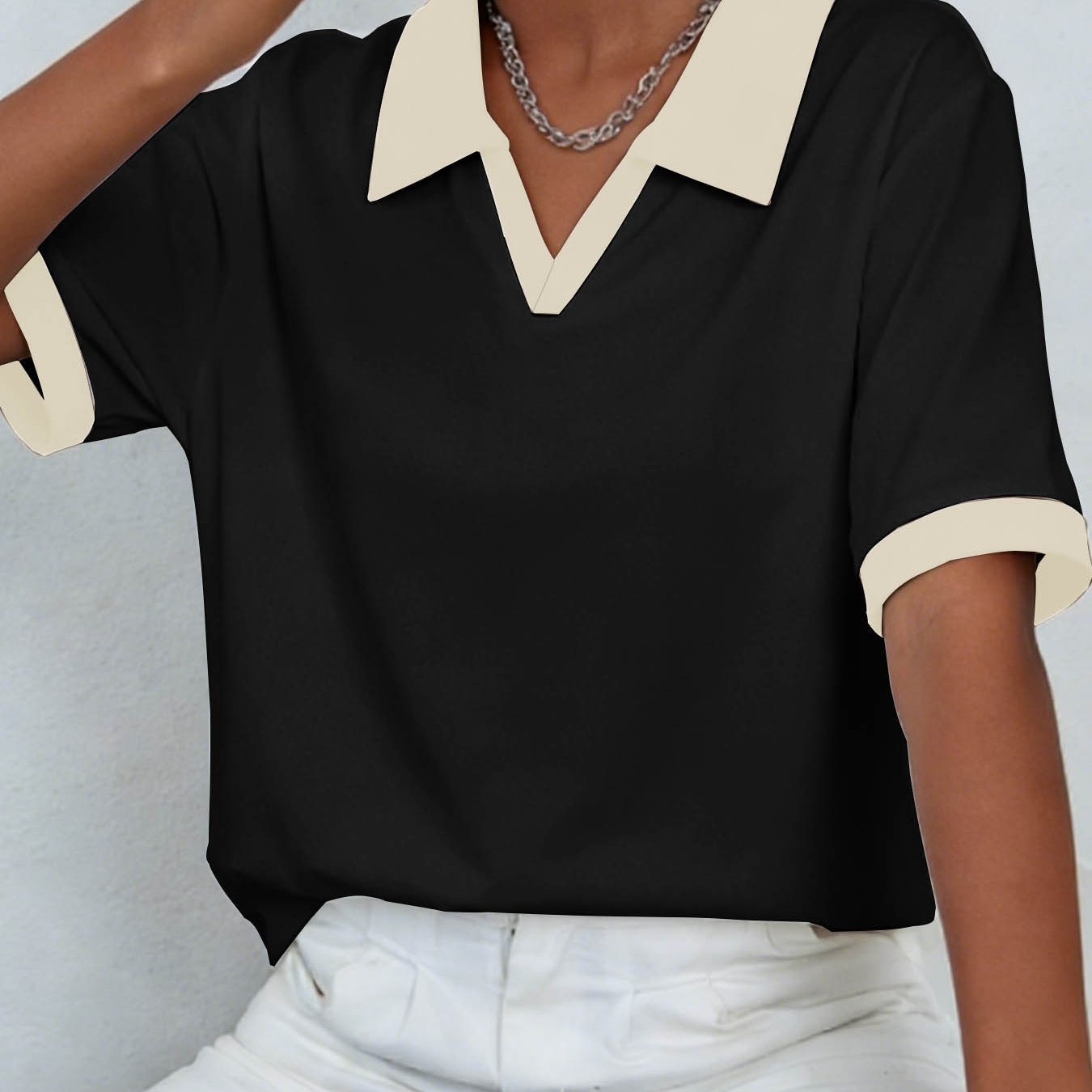 TEMU 플러스 사이즈, 여성용 캐주얼 칼라 체크 패치워크 셔츠, 가을 겨울 출근룩과 스타일, 오피스 및 비즈니스용