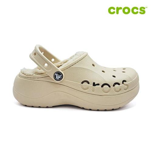 [크록스 정품] 바야 플랫폼 라인드 클로그 여성 털샌들 208708-11S
