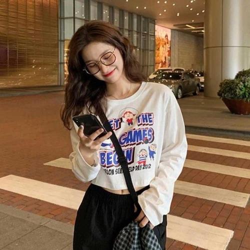 [엄지척]여자 주말 데이트 룩 캐주얼 편한 크롭 긴팔 티셔츠_19615402_667501