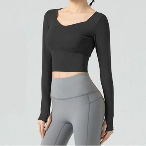 [엄지척]여성 패드 내장 슬림 크롭 긴팔티 헬스복 요가복 상의_20388175_667501
