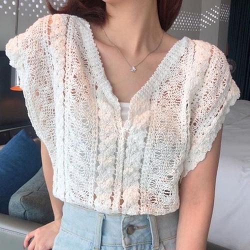 [엄지척]크로셰 베스트 여성조끼 여유핏 브이넥 세미크롭 조끼_20388465_667501