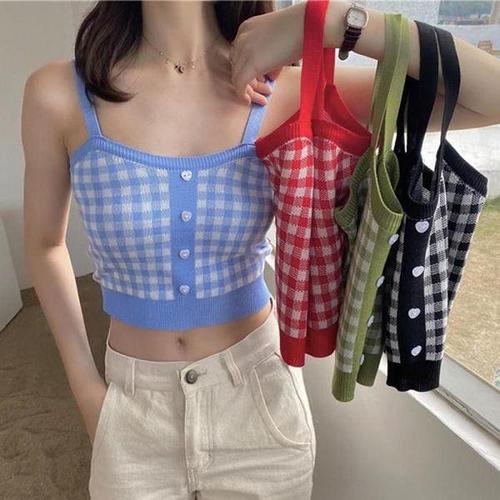 [셀러허브_여성트랜드패션]ONM 패션나시 체크 4컬러 크롭 러블리 니트 니트나