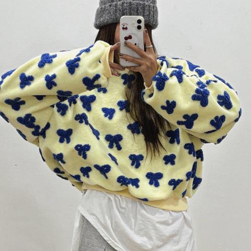[셀러허브_여성트랜드패션]여성 꽃무늬 잔골지 크롭 오버핏 맨투맨 겨울