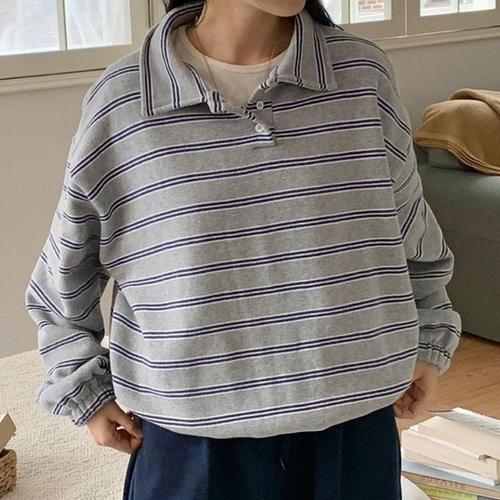 빅사이즈 510 줄패턴세미크롭맨투맨 DYYV533