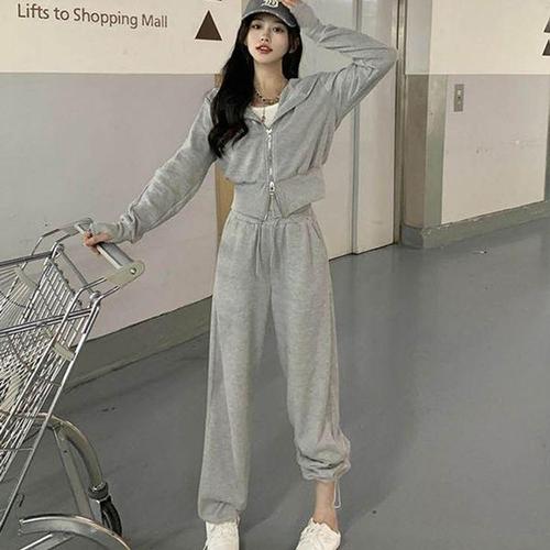 여성 조거 팬츠 조거팬츠 크롭 조깅복 후드 세트 (3amRV)