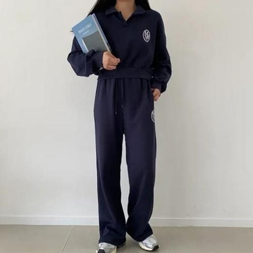[엄지척]여성 크롭 트레이닝 세트 캐주얼 카라 와이드 츄리닝_20436484_667501