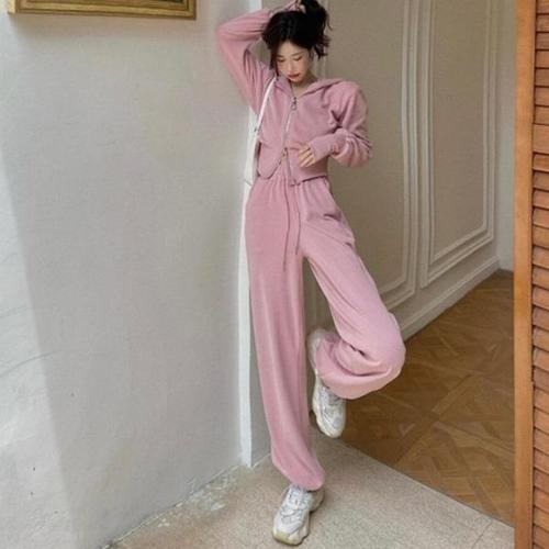 [엄지척]벨벳 크롭 후드 집업 바지 여자 트레이닝 세트_20435702_667501