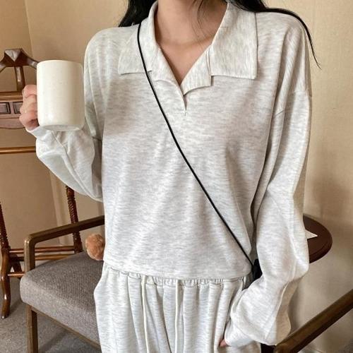 [기타]여성 3컬러 크롭 카라티셔츠 와이드팬츠 트레이닝셋업 (WFGRAOB)
