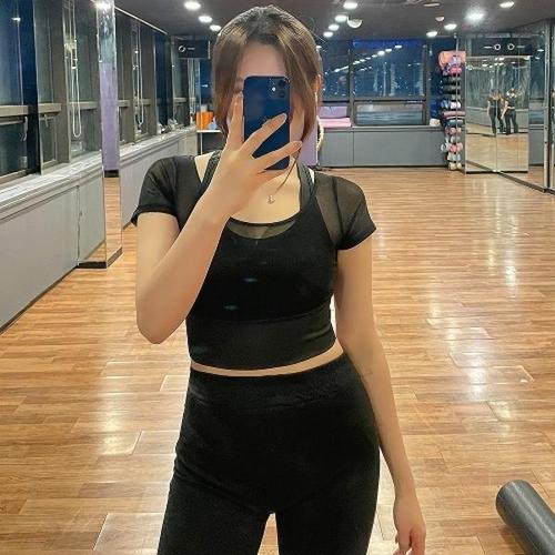 [엄지척]레이어드크롭티 브라탑 반팔 운동복 트레이닝 요가_20436476_667501