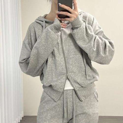[옷자락] 여자 특양면 투웨이 크롭 가을 트레이닝 후드집업