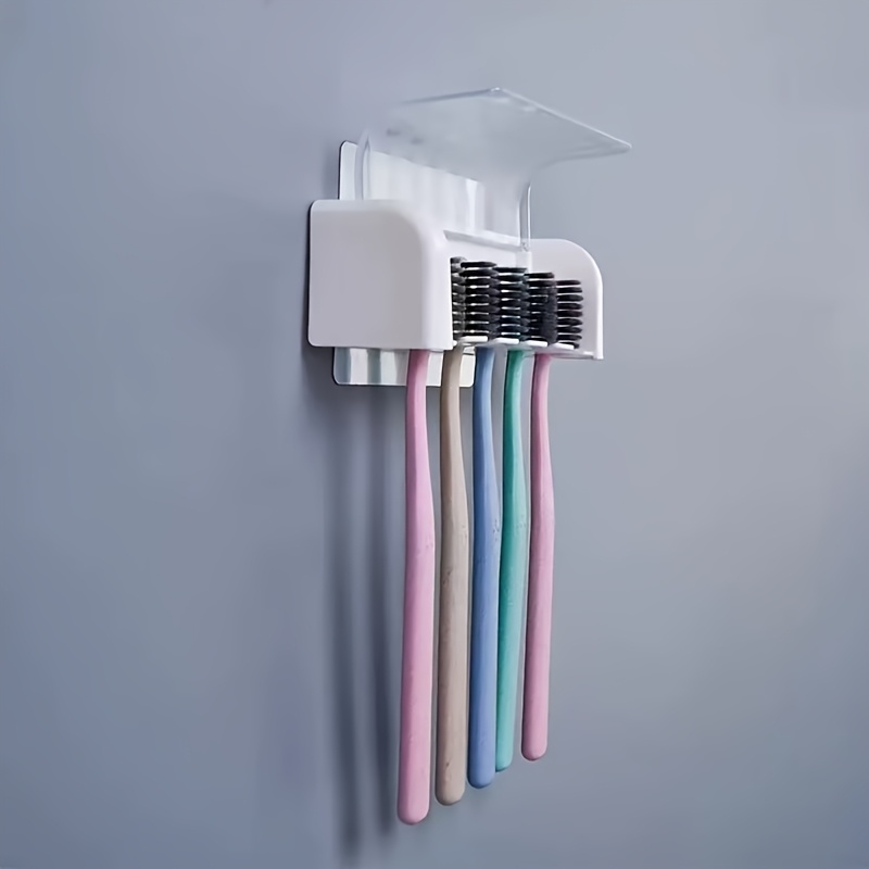 TEMU 커버 포함 5구 칫솔걸이, 접착식 벽걸이 칫솔 정리함, 플라스틱 욕실용품, 기숙사 및 샤워실에 적합, 칫솔 5개 수납, 전원 불필요, 완벽한 욕실용품