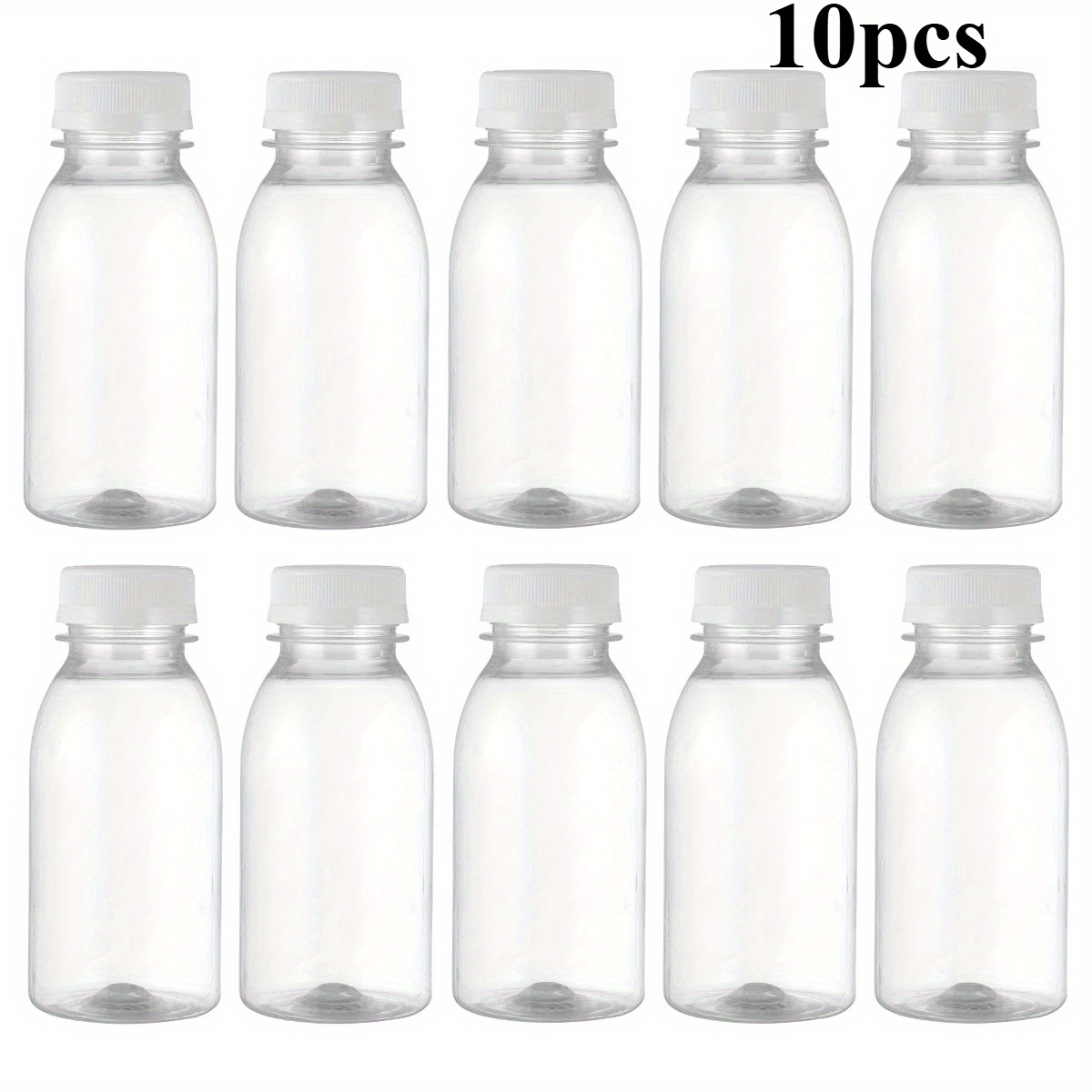 TEMU 10개입 플라스틱 주스병 뚜껑 포함 투명 재사용 가능 음료병 (200ml/6.66oz) - 주스, 우유, 차, 보관용