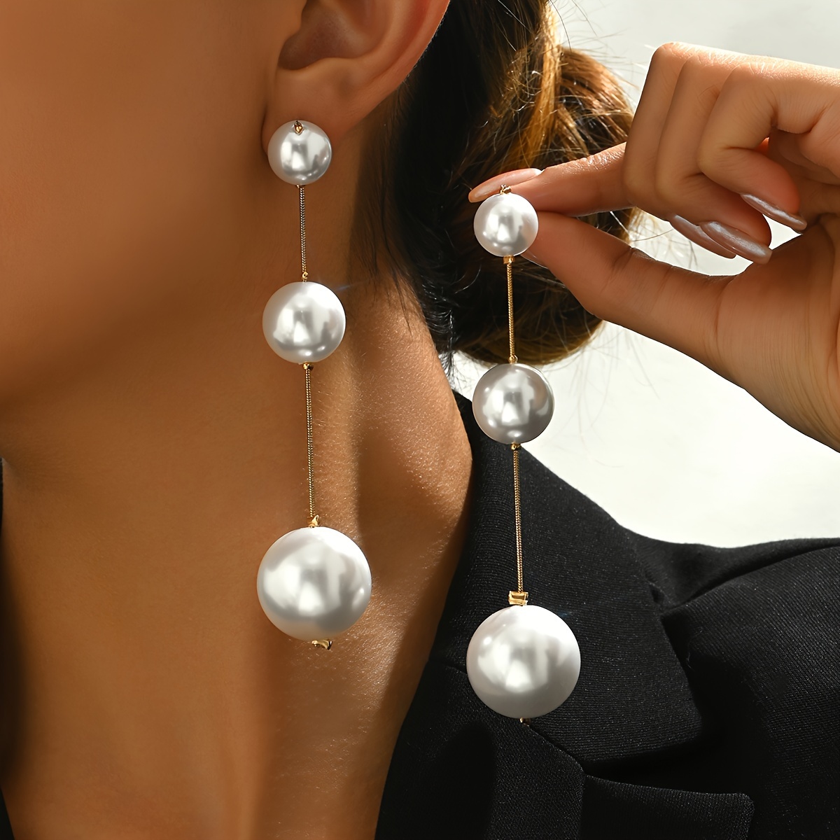 TEMU 여성 패션 귀걸이 1쌍, 레트로 우아한 모조 진주 라운드 비즈 태슬 롱 데일리 다용도 인품 귀걸이