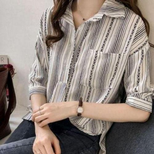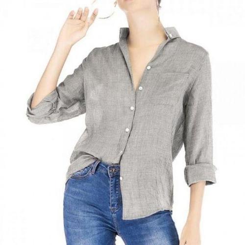 [에이치플러스몰]여름 린넨 데일리 여성 블라우스 클래식 데일리 긴팔