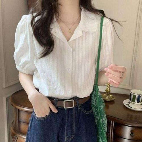 [에이치플러스몰]퍼프 화이트 데일리 반팔 여자 클래식 블라우스 여름