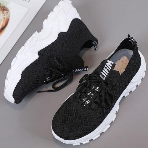 [에이치플러스몰]레터링 프린팅 여성 키높이 어글리 슈즈 메쉬 운동화